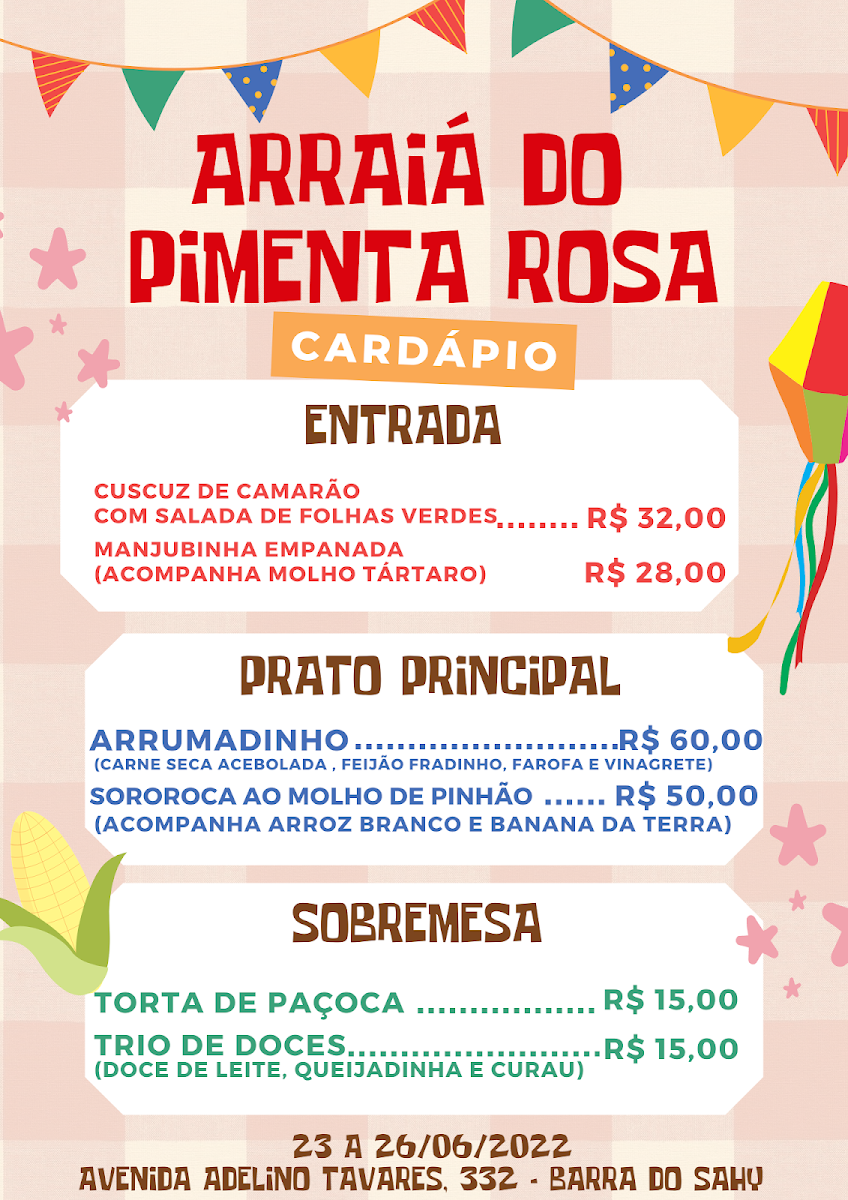 At Restaurante Pimenta Rosa, located in the heart of Praia Barra do Sahy, São Sebastião, you'll experience an unforgettable blend of flavors. The Restaurante Pimenta Rosa Menu features a wide array of dishes inspired by the vibrant tastes of Brazil, with a focus on fresh seafood and traditional Brazilian ingredients. Whether you're in the mood for a light appetizer or a hearty main course, every dish is thoughtfully crafted to highlight the best of local produce. With each bite, you’ll discover the perfect balance of spices and flavors that are the hallmark of Brazilian cuisine. From the rich, savory meats to the bright, zesty seafood, every choice on the menu offers a taste of authenticity. And, of course, don’t forget to pair your meal with one of their expertly crafted drinks to complete the experience. Whether you're dining with friends, family, or someone special, Restaurante Pimenta Rosa promises an inviting atmosphere and a menu full of culinary delights.